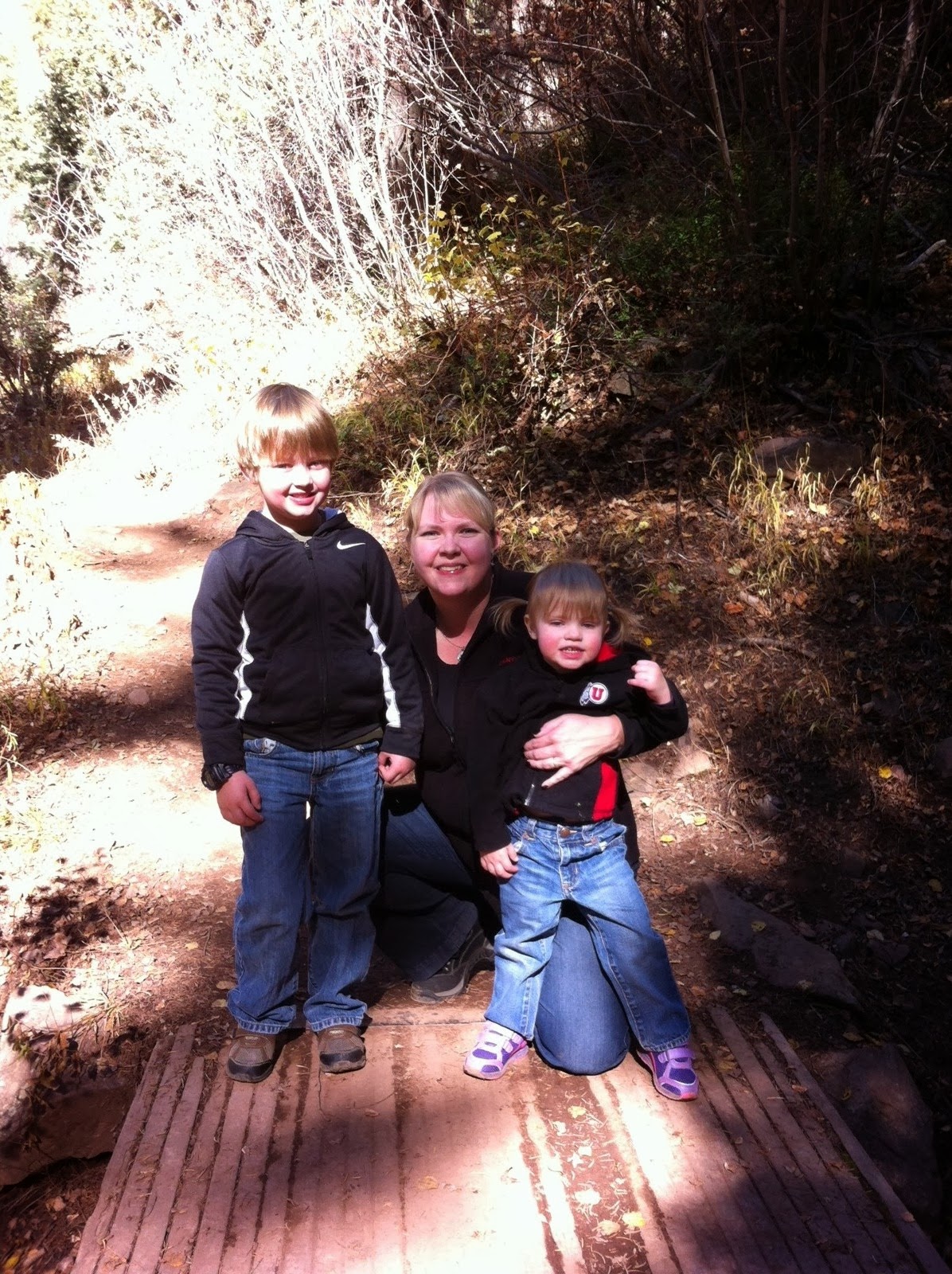 A couple of weekends ago we decided to go for a drive up Millcreek Canyon to check out the Fall Colors. When we got to the top of the canyon we got out to stretch our legs and the kids wanted to hit the trail. We went for a little bit but since we had not planned on hiking we were not ready (a in canvas summer shoes, Me in cute leather flats, no warm jackets).